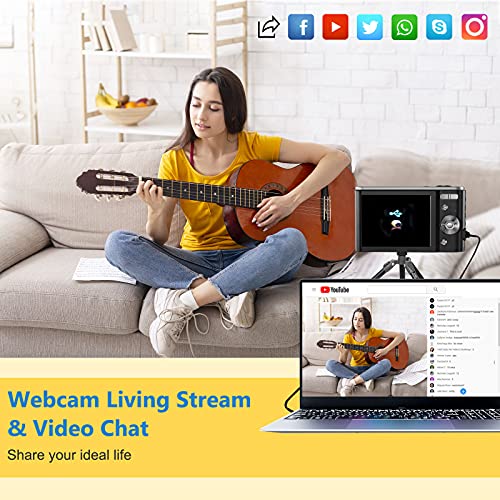 - Función de cámara web: esta cámara digital dispone de una función de cámara web, puedes conectarla a un PC a través de USB y la opción de cámara de PC se puede utilizar para la webcam. La transferencia de fotos y vídeos de la cámara de fotos a tu PC también es muy fácil gracias al cable USB incluido. De esta manera, también puedes comunicarte fácilmente con Facebook, YouTube, Instagram y otros medios sociales para compartir todos tus momentos felices.