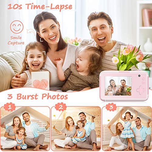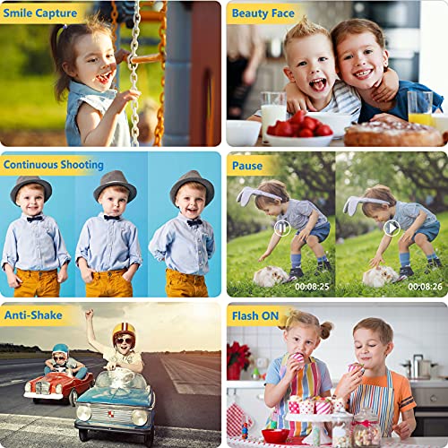 - 【Cámara para niños versátil】 ¡Deja que tu pequeño explore su lado creativo con la cámara para niños! Tratará de descubrir todas esas funciones y tomará fotos a medida que avance en su día. Diviértete con el zoom digital 4X, la captura de sonrisas, el disparo continuo y el disparador automático, sin perderte ningún momento.