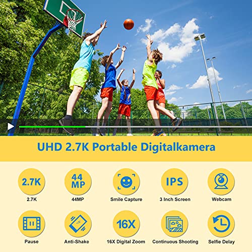 - ❤ 【Ultra HD 2.7K & 44MP】 Con una resolución de imagen Ultra HD 2,7K y una resolución de vídeo de 44MP, esta cámara digital cuenta con las últimas lentes actualizadas de la segunda mitad de 2021, imágenes de alta calidad y vlogs para que usted y su familia y amigos graben momentos emocionantes e inolvidables.