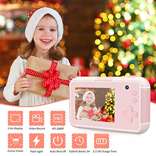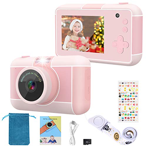 joylink Cámara para Niños, 2,4 Inch Pantalla Cámara de Fotos para Niños Cámara Selfie de 16MP 1080P HD Video Cámara Digital para Niños con Tarjeta TF de 32GB (Rosado)