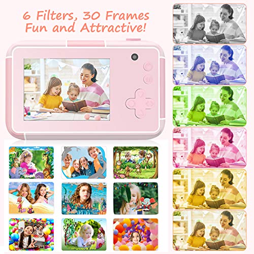 - 【Diseñado para más diversión】 Ofrezca a los niños pequeños una introducción divertida a la fotografía. La cámara para niños cuenta con 6 filtros y 30 marcos divertidos incorporados que el niño puede agregar a sus fotos. El juguete de la cámara viene con la opción de flash LED. Además, puede presionar el obturador durante mucho tiempo para disparar con enfoque automático, ¡tan divertido!