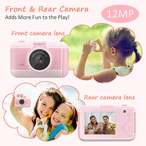 Cámara para Niños Infantil Cámara de Fotos Digital Cámara Juguete para Niños 2 Pulgadas 12MP 1080P HD Selfie Video Cámara Regalos Ideales para Niños Niñas de 3-10 Años con Tarjeta TF 32 GB (Rosa)