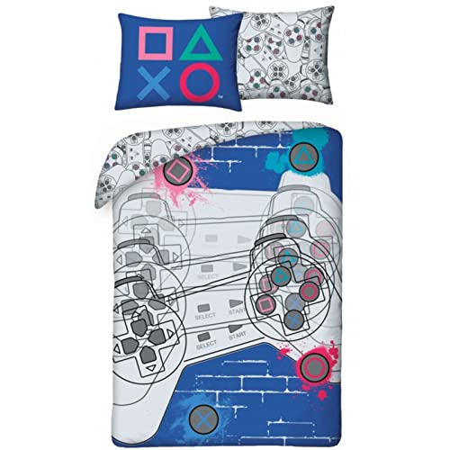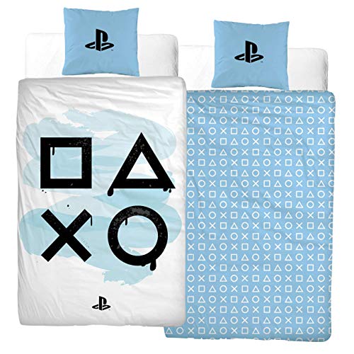 Character World Playstation PYSBLEDD001UK2 - Funda de edredón para Juegos de Cama Doble con Funda de Almohada a Juego, Color Azul