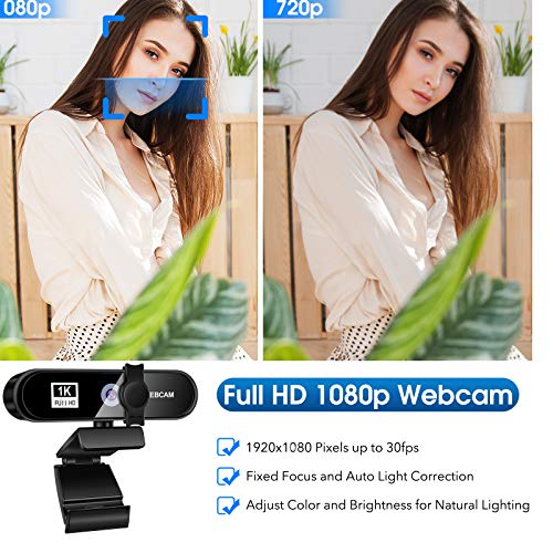 - ♫♫【Cámara Web Full HD 1080P 】 WANFEI Webcam Equipada con alta resolución de 1920*1080 píxeles y fotograma de video de 30 FPS, la cámara webcam 1080P WANFEI Full HD puede producir imágenes nítidas y videos fluidos y nítidos. Junto con el enfoque automático y la corrección automática de poca luz, la cámara web WANFEI le permite encontrar el ángulo adecuado y mostrar lo mejor durante la transmisión en vivo o la videollamada