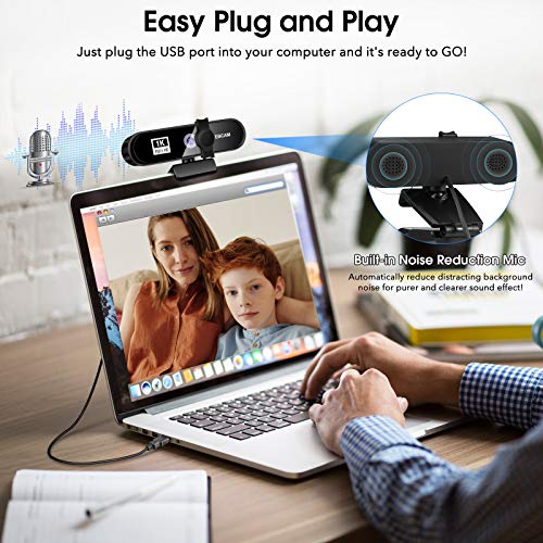 - 【Gran Angular de 120° y Micrófono Mejorado】 La webcam con microfono para pc tiene un gran angular de 120° y un clip fijo giratorio y ajustable de 360° para lograr el mejor ángulo de visión. El micrófono digital y el chip de procesamiento de audio capturan su voz con un rico audio estéreo. La webcam para ordenador reduce el molesto ruido de fondo, lo que permite a su familia y colegas escuchar su voz con claridad, disfrutar de un sonido más claro y comunicarse fácilmente