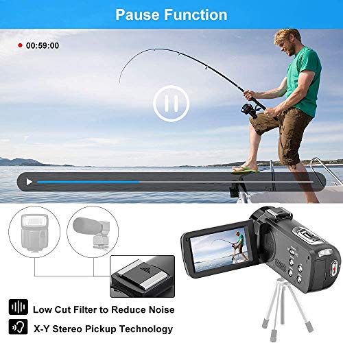 FamBrow Videocámara Cámara de Video Full HD 1080p 36MP videocamara con Zoom Digital 16X Función de Pausa con LCD de 3.0 ”y Pantalla de rotación de 270° Cámara de Video grabadora con Control Remoto
