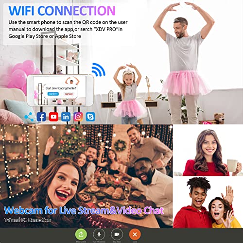 - 【Conexión WiFi + Función de Visión Nocturna por Infrarrojos】: Después de conectar esta camara video 4k a través de WIFI, puede usar la APLICACIÓN descargada (iSmart DV) para controlar la cámara, transmitir fotos y videos de forma inalámbrica a su teléfono móvil o tableta, y luego Puede compartirlo en Facebook, YouTube, Skype y otras redes sociales. Esta cámara video 4K también admite la función de visión nocturna por infrarrojos, que puede capturar imágenes y videos claros en un ambiente oscuro