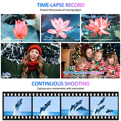 - 【Grabadora de video multifuncional】 Esta cámara vlog de Youtube admite cámara lenta, detección de movimiento, grabación en bucle, grabación en serie, grabación de sonrisas, función de rostro bello, temporizador automático, modos de reproducción, función de cámara web, función anti-vibración y control remoto (22 pies / 7 m)) ect ... puedes grabar tus maravillosos momentos con estas características especiales.