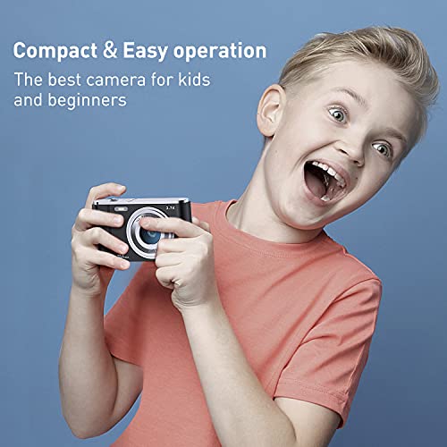 - ❤ 【Portátil & Fácil de Usar】 Esta mini cámara digital portátil es muy liviana y pequeña, más pequeña que un teléfono inteligente, puede guardarla fácilmente en su bolsillo y llevarla en cualquier momento y lugar. Esta cámara digital de apuntar y disparar es muy fácil de operar y simple de controlar, muy adecuada para personas mayores, adolescentes, niños y estudiantes.