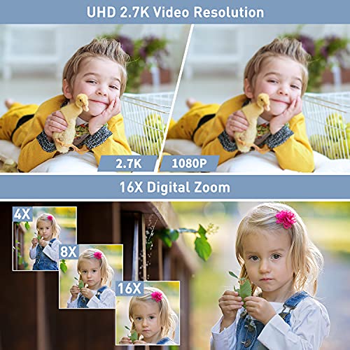 - 【Mini cámara digital ultra HD 2.7K】: Esta camara fotos compacta tiene una resolución de video UHD de 2.7K/2688X1520, 44 megapíxeles (máximo), LCD de 2.88 pulgadas, zoom digital 16X, grabación al cargar, flash y micrófono incorporados y más.