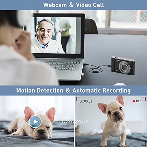 - 【Cámara multifuncional】: La camara de fotos tiene anti-vibración, función de pausa, cámara lenta, disparo con temporizador, disparo continuo (3 disparos), grabación/fotografía a intervalos de tiempo, función de belleza, apagado automático, detección de movimiento y más. Pequeña y ligera, esta cámara digital se puede llevar fácilmente con un cordón o en el bolsillo.