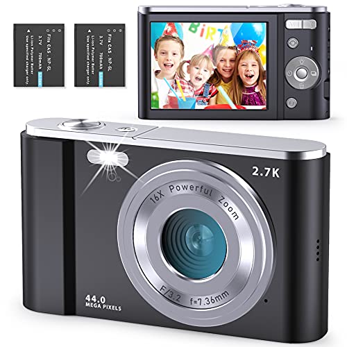 Compactas Cámaras Digitales FamBrow Camara de Fotos 2.7K 2.88 Pulgadas 44 megapíxeles con Zoom 16X Recargable UHD Cámara Digital para Estudiantes Adultos Mayores niños - Negro