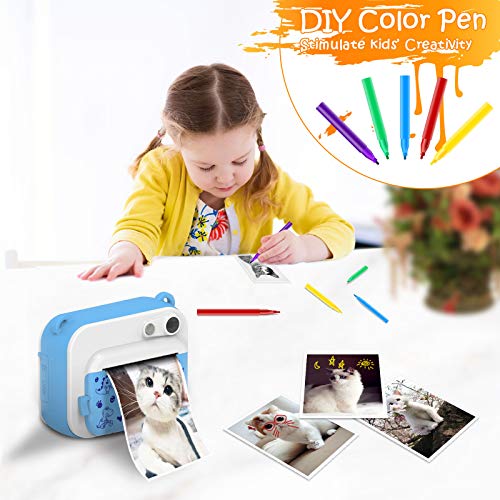 - 【Cultive Imaginación de Niños】 Juguete cámaras para niños con 3 rollos de papel de impresión, puede imprimir 240 imágenes en blanco y negro. Los niños pueden pintar las fotos con bolígrafos de colores incluidos a través de su imaginación y creatividad. Sin tinta y agradable para la piel, uso seguro para niños.