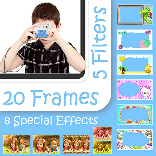 - 【Inspire el Interés de los Niños】 Estos video cámara digital con 20 marcos divertidos integrados y 8 efectos especiales, los niños pueden elegir su efecto favorito. Esta cámara de fotos es como un amigo que acompaña a los niños a explorar el mundo, alejándolos de sus teléfonos inteligentes y descubriendo la alegría de explorar el mundo.