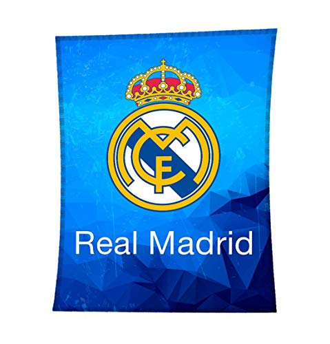 Asditex Manta Rachel Real Madrid 130x170 - Manta de Viaje - Estampado Fondo Azul con el Escudo del Madrid
