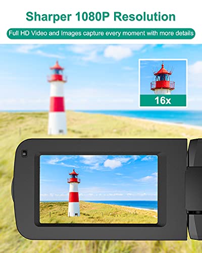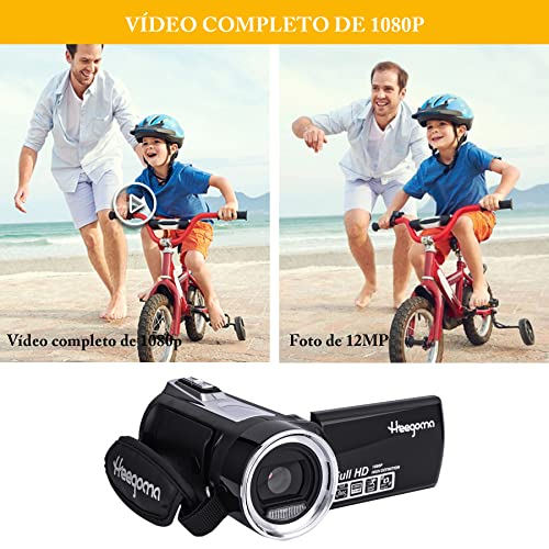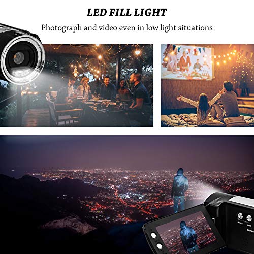 - 【Cámara de video digital con imagen nítida】: 1920*1080 fotos y videos Full HD 1080P, con función anti-vibración, la luz LED le permite tomar fotos y videos en situaciones de poca luz.