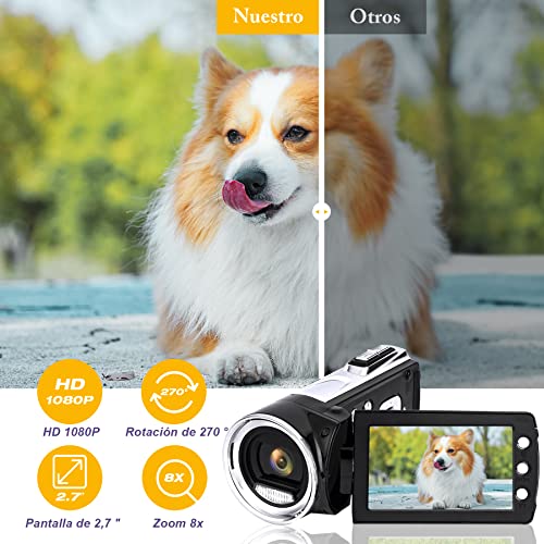 HG8162 Cámara de video digital 1080P FHD Videocámara / 2,7" Pantalla TFT LCD / 270 grados de videocámara giratoria para niños/Adolescentes/Estudiantes/Principiantes/Los Ancianos Regalo de Navidad