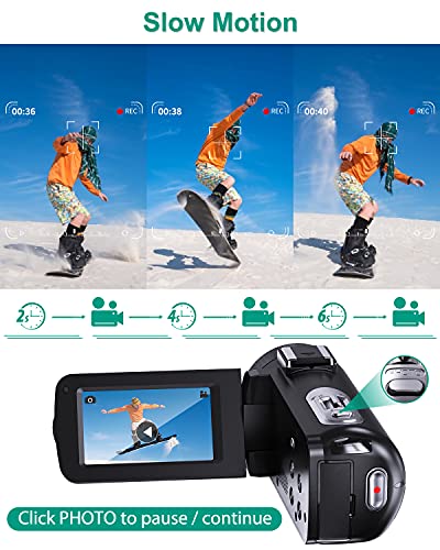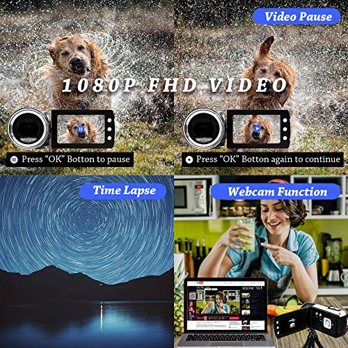 - 【Grabador de video para principiantes con funciones ricas】: Pantalla giratoria para encender / apagar, funcionar como cámara web para PC, función de pausa / reinicio de grabación, reproducción de soporte en la cámara, anti-vibración / detección de rostro / captura de sonrisas / panorama