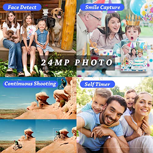 - 【Imágenes de alta calidad】: Con función antivibración, toma fotos de 24MP y videos Full HD 1080P. La luz LED le permite tomar fotos y videos en situaciones de poca luz.