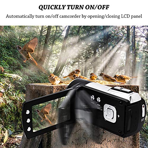 - 【Pantalla LCD giratoria】: LCD TFT de 2,7"; Encienda / apague automáticamente la videocámara abriendo / cerrando el panel LCD; La pantalla LCD admite rotación de 270° para capturar cada momento hermoso.