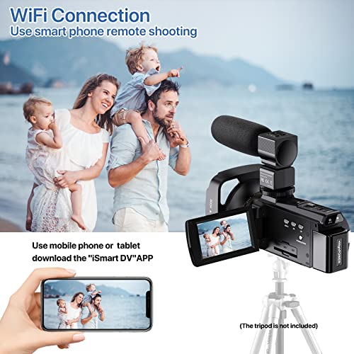 Cámara de Video Videocámara 4K WiFi 48MP IR Cámara de vlogging de visión Nocturna con micrófono Zoom Digital 16X Videocámara con Pantalla táctil giratoria de 270 ° y 3.0 Pulgadas con Control Remoto