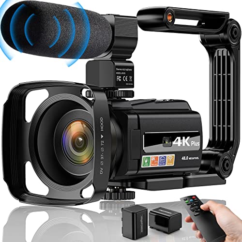 Videocámara 4K Ultra HD 48MP Camara,WiFi IR Visión Nocturna Camara Video,Zoom Digital 16X 3.0 IPS Pantalla Táctil Giratoria De 270 °Youtube cámara con Micrófono,Estabilizador,Control Remotol