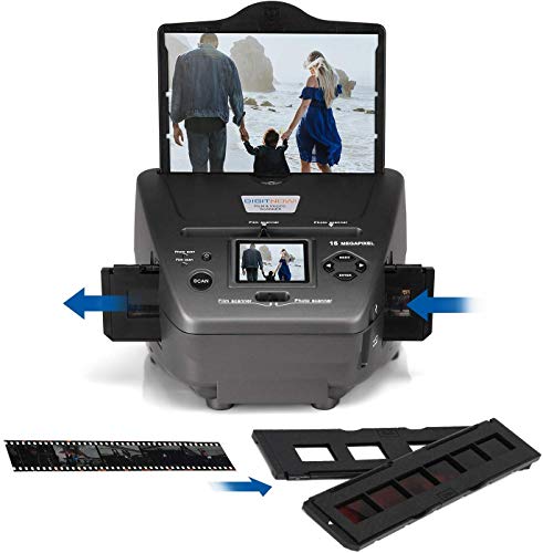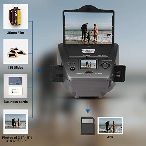 - Convertidor inteligente: escanee sin esfuerzo sus fotos, postales, diapositivas y negativos en el escáner (memoria integrada de 128 MB) o en la tarjeta SD (incluida-4G). no se necesita computadora Imágenes JPG digitales en una tecnología de captura instantánea de 16 megapíxeles de escaneo rápido y de alta calidad digitaliza archivos JPG de alta resolución en segundos