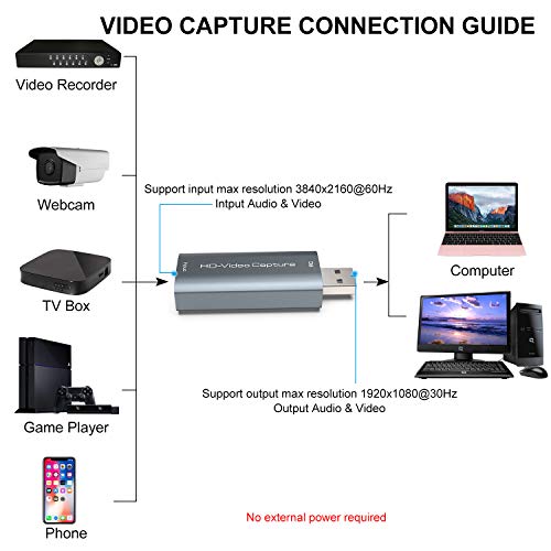 - CONECTAR Y JUGAR - Nuestro convertidor de captura de juegos es realmente plug-and-play, no se necesita controlador adicional, no se requiere fuente de alimentación externa. Tamaño de bolsillo fácil de llevar contigo a cualquier parte. Y si tienes alguna duda, contáctanos. Garantía de satisfacción del 100% en cualquier caso.