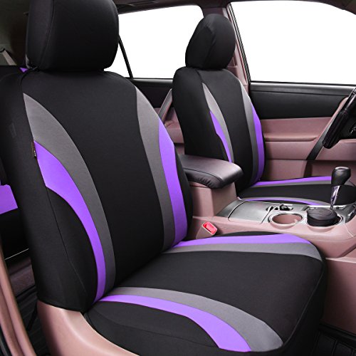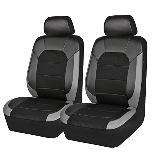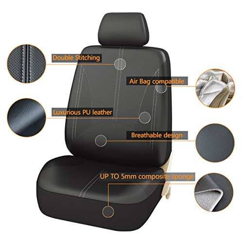 CAR PASS Juego de fundas para asientos delanteros de coche, Cubiertas de Asiento de Auto de Cuero Artificial, 2 Piezas