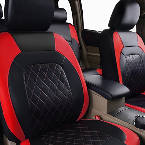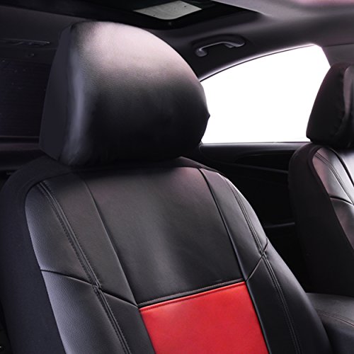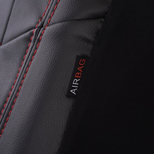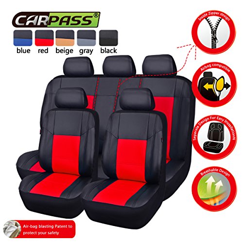CAR PASS Skyline - Fundas de piel sintética para asientos de coche, ajuste universal para coches, SUV, vehículos, esponja compuesta de 5 mm en el interior, compatible con airbag (11 unidades, negro deportivo con rojo)