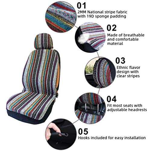 Wakauto 4 Piezas de Asiento de Coche étnico Cubre Elegante a Prueba de Polvo de la Cubierta del Asiento Delantero para Coches Camiones suvs sedanes (Gris)