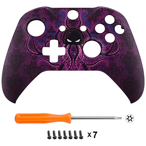 eXtremeRate Carcasa para Mando Xbox One Placa Delantera Funda Frontal Housing Cover Case Tacto Suave Shell Faceplate Repuestos para Controlador Xbox One S&One X-Model 1708(Pulpo Morado)