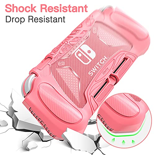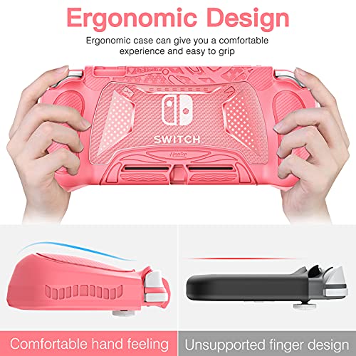 HEYSTOP Carcasa para Nintendo Switch Lite, Funda para Nintendo Switch Lite con 2 Ranura de Tarjetas de Juego y Protector de Pantalla para Switch Lite Console y Grips con Agarres para el Pulgar - Rosa