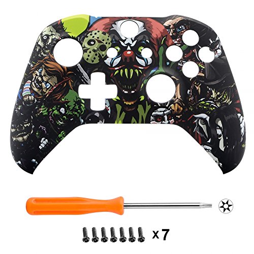 eXtremeRate Carcasa para Xbox One Funda Delantera Carcasa Frontal Kit de reemplazo Tacto Suave Placa Frontal para Mando Controlador de Xbox One X Xbox One S-Modelo 1708(Fiesta de Miedo)