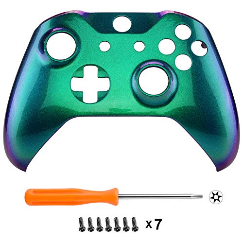 eXtremeRate Carcasa para Xbox One S X Funda Delantera Protectora de la Placa Frontal Cubierta de reemplazo para Mando del Xbox One S y Xbox One X (Model 1708) Camaleónica de Verde a Violeta