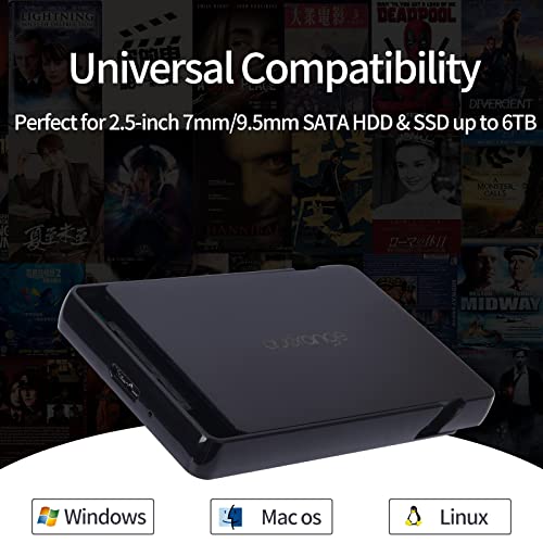 - Caja de disco duro de 2.5 ", SATA de 2.5 pulgadas a USB 3.0 Caja externa HDD SSD sin herramientas para caja de disco duro externo de 9.5 mm y 7 mm, unidad de disco duro externa de 2.5" Enclousre, compatible con la mayoría de HDD / SDD SATA de 2.5 "7 mm / 9.5 mm, optimizado para SSD, compatible con UASP SATA III