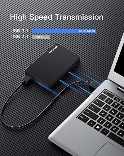- Disco duro externo de 2,5 pulgadas Enclousre conecta disco duro SATA I / II / III de 2,5 "a través de SuperSpeed USB 3.0 con velocidad de transferencia de datos de hasta 5 Gbps, USB 2.0 con velocidad de transferencia de datos de hasta 480 Mbps