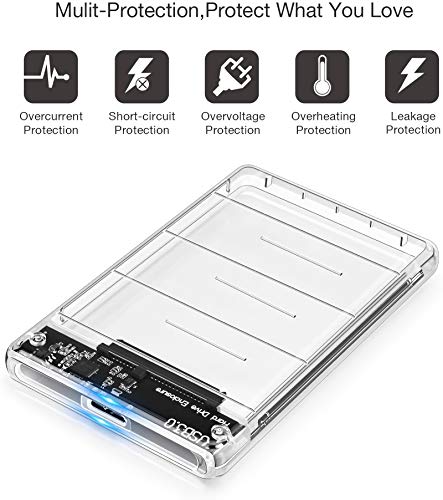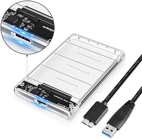 POSUGEAR Carcasa Disco Duro 2.5" USB 3.0, Caja Disco Duro Externo de HDD SSD SATA I/II/III de 7mm 9.5mm de Altura, Sopporta UASP, No Requiere Herramientas, con Cable USB3.0 [Transparente]