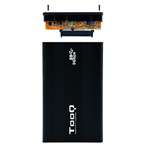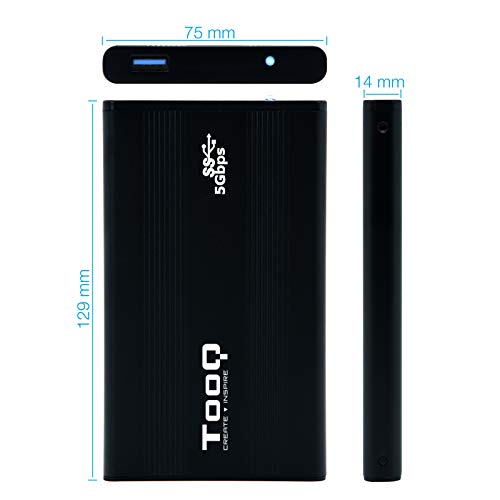 TooQ TQE-2524B - Carcasa para Discos Duros HDD de 2.5", (SATA I/II/III de hasta 9.5 mm de Alto, USB 3.0), Aluminio, indicador LED, Color Negro, 50 grs.