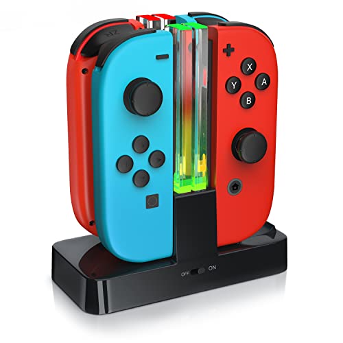 - 【Carga SimultáNea】Nunca se quede sin batería nuevamente y tenga sus controladores listos para jugar, cargando hasta 4 Joy-Cons simultáneamente. Cargue rápidamente los 4 controladores y prepárese para una increíble acción de juego multijugador con fri】 Nunca se quede sin batería nuevamente y tenga sus controladores listos para jugar, cargando hasta 4 Joy-Cons simultáneamente. ¡Carga rápidamente los 4 controles y prepárate para una increíble acción de juego multijugador con amigos y familiares!