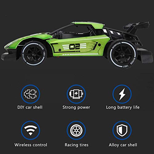 FOLOSAFENAR 1/16 Coche de Control Remoto de Alta Velocidad, RC Drift Sports Racing Cars Simulación inalámbrica Coche RC electrónico Gran Regalo para niños (Verde)