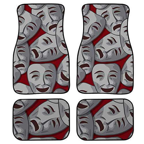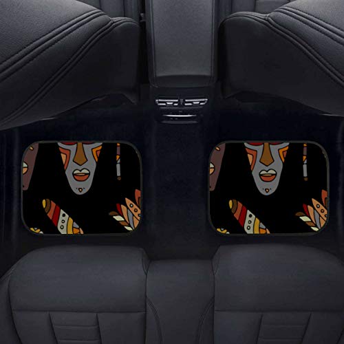 JIUCHUAN 4 Pieces Universal Carpet For Car Retro National Tribal Indian Mask Carpet For Car Floor Front & Rear Non-Slip Carpet with Rubber Backing For Car SUV Van & Truck