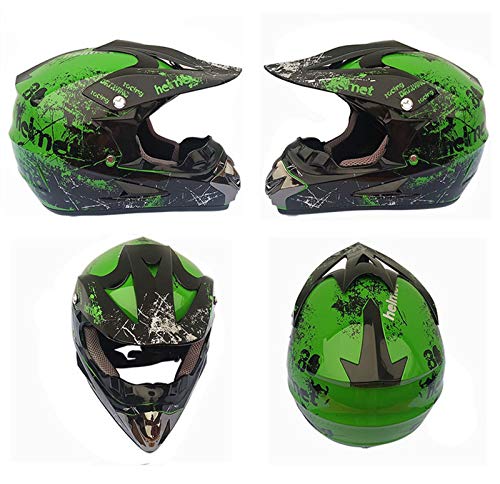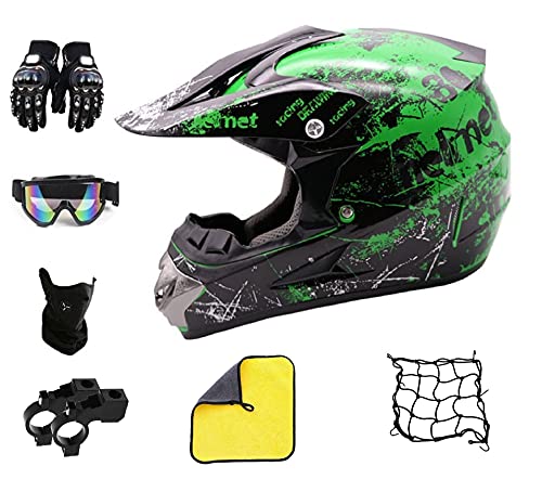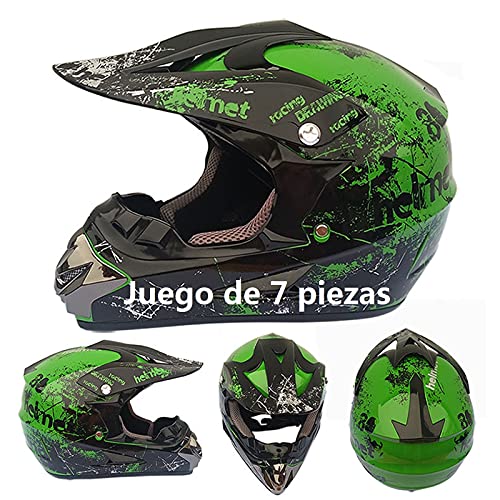 Casco Motocross niño Verde Set de Cascos de Cross con Gafas para Moto Cross Enduro MTB Quad BMX Bicicleta ATV Go-Kart D.O.T Standard Baratos (Juego de 7 Piezas) (L(59-60 CM))
