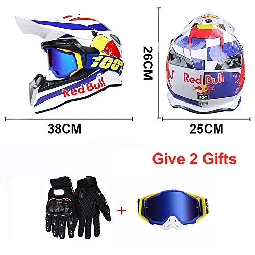 Cascos Motocross Casco Motocicleta Modular Caja De ABS CertificacióN Puntos Ciclomotor Off Road Crash Cross Downhill DH Four Wheelerd Cascos Integrales con Gafas Red Bull Gloves