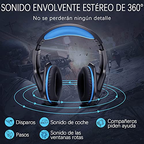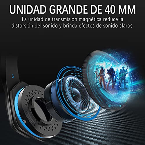 - [Sonido Envolvente & de Calidad]Estos auriculares de juegos con sonido estéreo permite disfrutar de una mayor precisión y mejorar la experiencia de videojuegos, sobre todo, a la hora de localizar enemigos en la pantalla. El diseño de casco cerrado posee un excelente aislamiento acústico y los transductores de 40 mm generan buenos graves y efectos realistas. Le permite experimentar una experiencia de juego inmersiva y le ayudará a ganar el juego