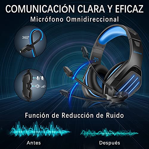 - ?Cancelación de Ruido? El micrófono omnidireccional utiliza tecnología de reducción de ruido, que puede filtrar el ruido de fondo, para que la comunicación entre usted y sus compañeros de equipo sea más clara y sencilla. Gracias a Gootoop auriculares para juegos, podría disfrutar de una mejor comunicación y experiencia de juego. También facilita el teletrabajo y streaming.