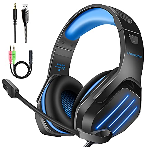 Cascos Gaming PS4 Gootoop para PS4, PS5, PC, Xbox One, PS4, Auriculares con micrófono, Sonido Envolvente 3D, cancelación de Ruido, Luces LED