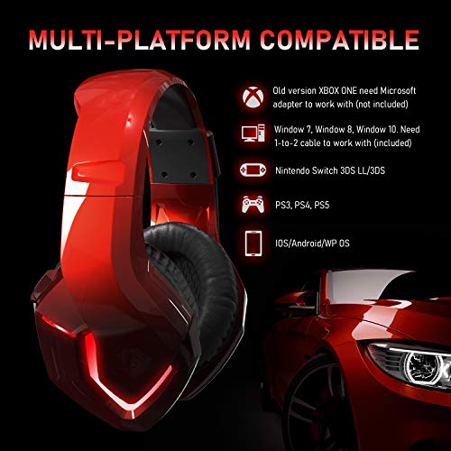 - ❖Apariencia Muy Fantástico❖ Esto cascos ps4 con microfono están diseñados con efecto de luz LED de respiración de 7 colores de cambio automático para mejorar la atmósfera de los gaming. Apariencia única, llamativa, nítida con muchos elementos de gaming. Un rendimiento de alta calidad, profesional auriculares xbox one / cascos gaming PS4 / auriculares con microfono pc con apariencia muy fantástico y efecto de iluminación. Tener más diversión para ganar juegos con sus amigos.