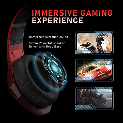 - 【TRUE SURROUND SOUND EFFECT FOR IMMERSIVE GAMING EXPERIENCE】 ENVEL gaming headset adopt superior 50mm audio drivers combined with advanced audio techniques. It delivers quality simulated surround sound to enhance the immersive gaming experience. With the high responsive audio drivers, you can be better to make out the direction from which the sound is coming, like the gun fire, enemy footsteps and scenario indicators. Let you gain the competitive edge you need to take gaming to the next level