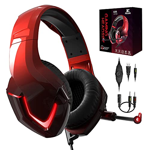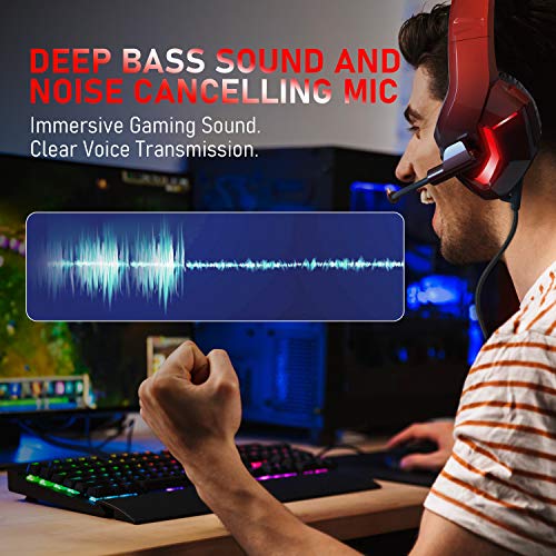 Auriculares Gaming con Microfono para PS4 PC Xbox One PS5 Switch Fortnite Gamer Computadora NEEDONE K19 Cascos Gaming con Bass Surround Cancelacion Ruido Diadema Acolchada y Ajustable Rojo